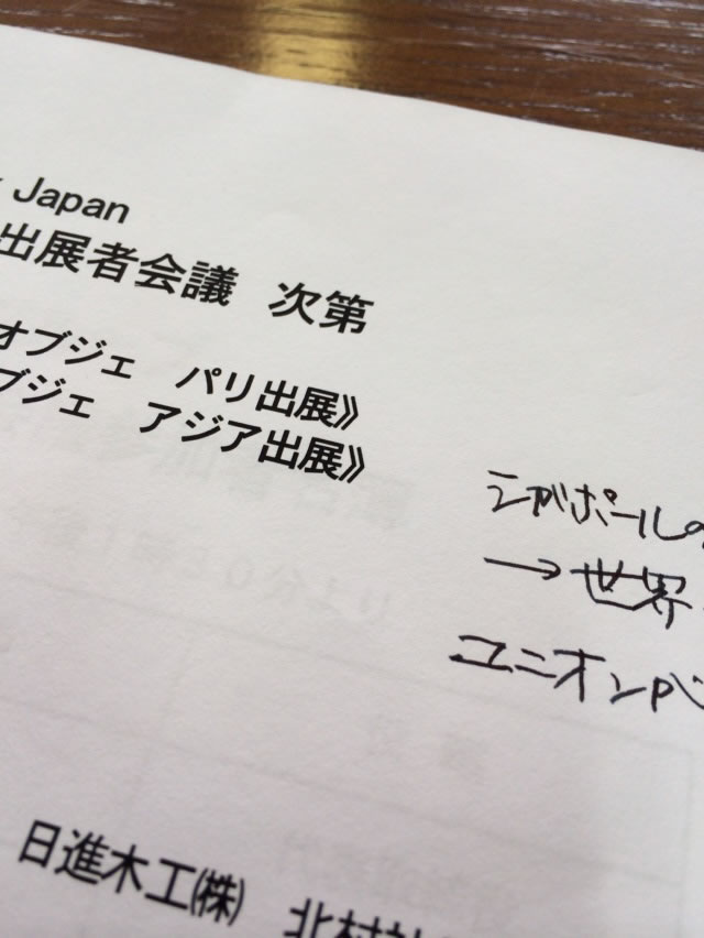 3月にシンガポールで開催される『メゾン・エ・オブジェ』の最終打ち合わせに…Posted by ikuta in イクタの日常 / イベント・展示会 tagged with イクタ / イベント / フローリング / 展示会 / 床材 / 打ち合わせ On 2月 20 2014先日、この3月にシンガポールで開催される『メゾン・エ・オブジェ』の最終の打ち合わせに… Read More...00