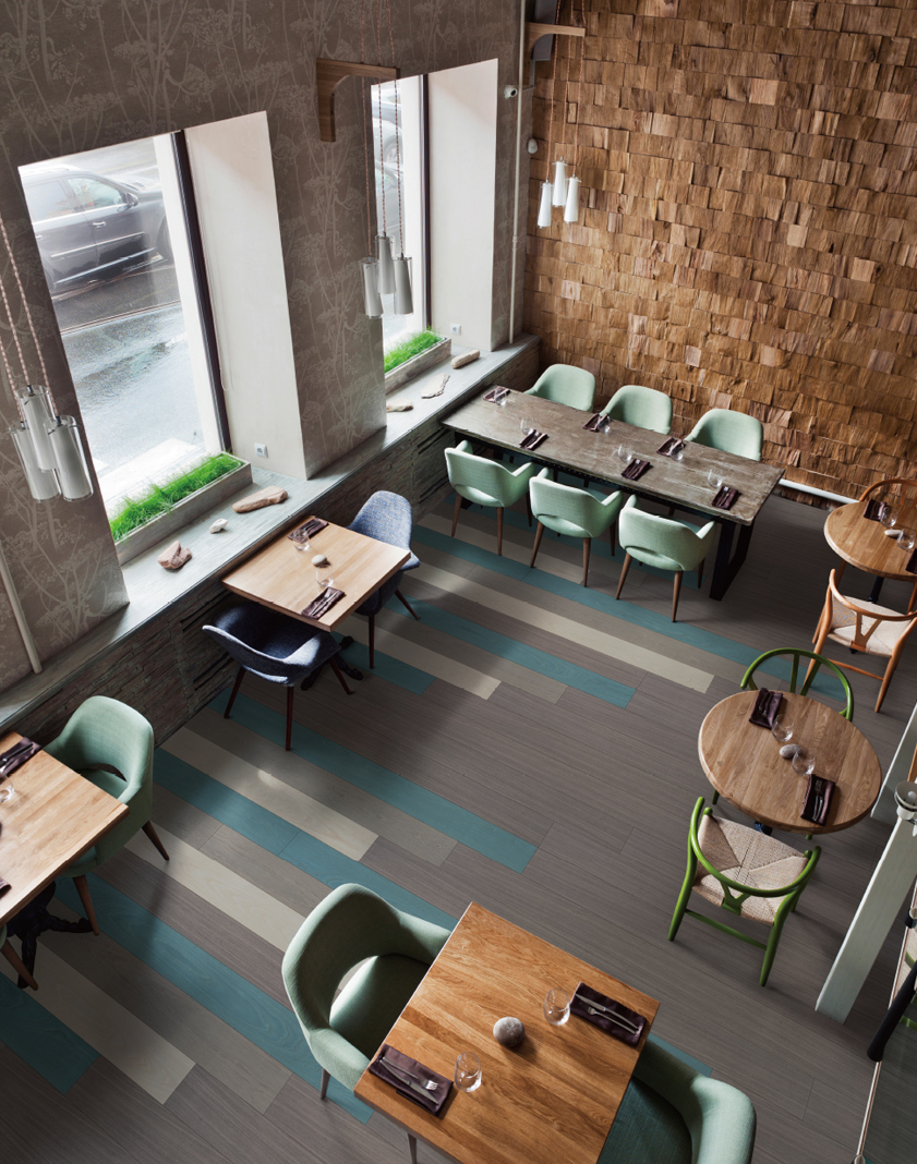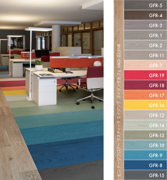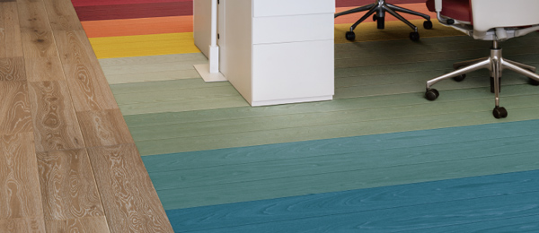 「インテリア空間にカラーを」というテーマにイタリアtabu社の染色単板を使った幅広いカラー展開が楽しめるフローリングです。